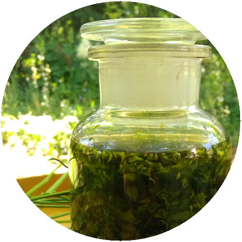 In unserer Kräuterwerkstatt stellen wir aus den Schätzen der Natur verschiedene Zubereitungen für die Gesundheit und das Wohlbefinden her. Dafür ernten wir die Wildkräuter und Heilpflanzen im Rhythmus der Natur und auch das, was uns die jeweilige Jahreszeit bietet. Im Frühjahr verarbeiten wir die Knospen und das kraftvolle frische Grün junger Triebe, im Sommer die sattgrünen Blätter und duftende Blüten, im Herbst die reifen Früchte, Samen und Wurzeln. Daraus entstehen dann zum Beispiel Elixiere, Ölauszüge, Balsame, Cremes, Kräutertees, Weinauszüge, Liköre, Wildkräutersalze, Sirup, Gemmomazerate, Hydrolate, Oxymel und Räucherwerk.